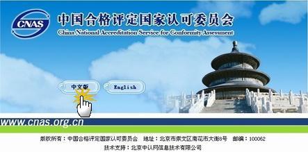 (三)通過(guò)國(guó)家認(rèn)可委(CNAS)網(wǎng)站查詢 1、登陸CNAS網(wǎng)站www.cnas.org.cn,點(diǎn)擊“中文版”,進(jìn)入國(guó)家認(rèn)可委網(wǎng)站中文首頁(yè);