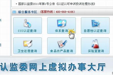 2、于首頁(yè)中部“綜合服務(wù)專區(qū)”,點(diǎn)擊“體系查詢”,進(jìn)入體系查詢頁(yè)面;