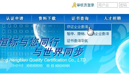 二、證書查詢方法 (一)通過(guò)恒標(biāo)網(wǎng)站查詢 1、登陸www.woao.cc,進(jìn)入北京恒標(biāo)質(zhì)量認(rèn)證有限公司網(wǎng)站首頁(yè);